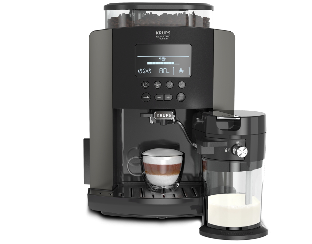 Osiguravajući izvanredan kvalitet na jednostavan način, Arabica Latte automatski aparat za espresso kafu donosi pofesionalne rezultate za sve vaše omiljene napitke - od bogatog ristretta i lunga, do neodoljivo kremastog cappuccina. Jednostavna posuda za mleko donosi savršeni cappuccino na dohvat ruke. Izuzetno veliki LCD ekran pruža izuzetno iskustvo pri pripremi napitaka. KRUPS Quattro Force sistem priprema kafu izvanrednog ukusa zahvaljujući tehnologiji dizajniranoj za optimalno mlevenje, savršeno potiskivanje, filtriranje i isticanje, kao i automatsko čišćenje aparata.