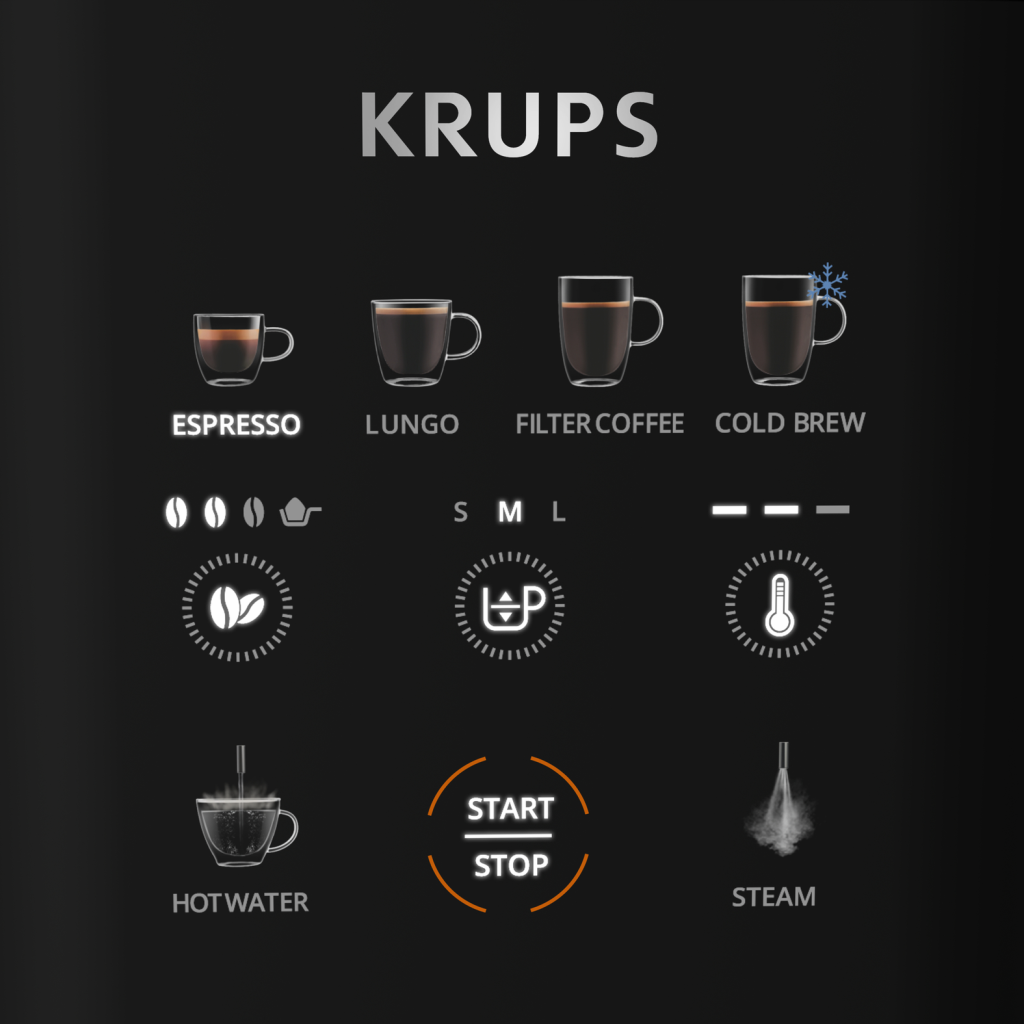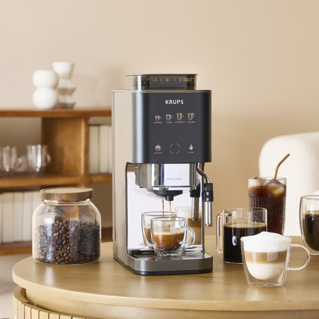 Iskusi punu aromu espresa od sveže mlevene kafe jednim dodirom uz KRUPS Coffee Crush Experience. Tako ukusno. Od espresa do kapućina i hladne kafe i još mnogo toga, čak i sa prethodno mlevenom kafom. Tako kompaktan. Širina 15 cm savršeno se uklapa u vaš enterijer. Tako jednostavno. Zahvaljujući napicima koji su dostupni jednim dodirom