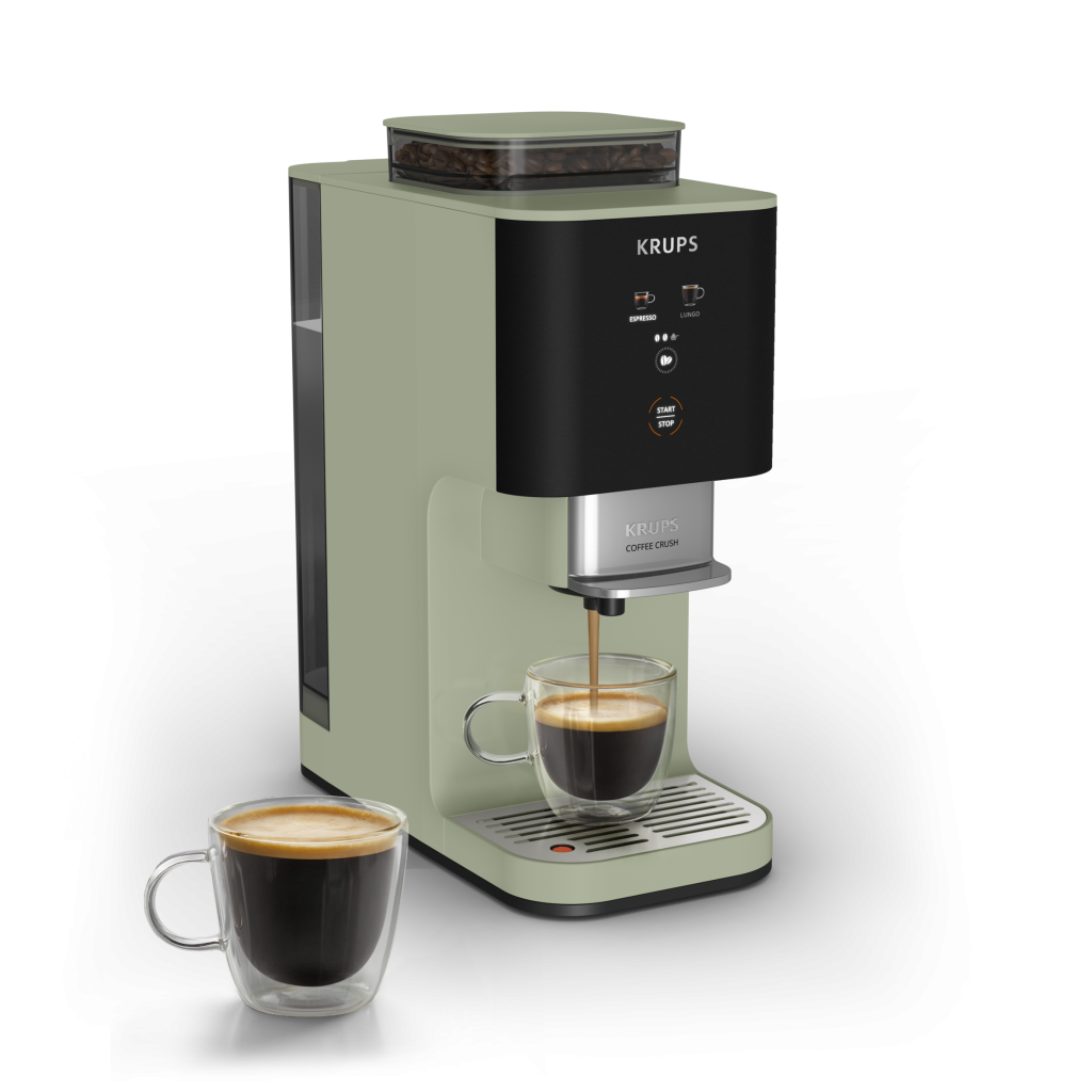 Otkrivanje svih aroma sveže mlevene kafe nikada nije bilo lako kao sa KRUPS Coffee Crush aparatom. Oko 50% kompaktniji od klasičnog automatskog aparata, možete ga staviti gde god želite. Pripremite savršeni espresso jednim dodirom. Pripremite espresso i lungo jednostavnim podešavanjem intenziteta. Uživajte u jednostavnom odlaganju iskorišćene kafe nakon svake pripreme.