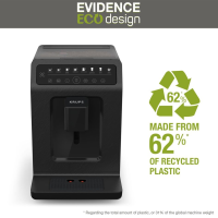 KRUPS Evidence Eco Design automatski aparat za espresso kafu kombinuje izvanredan ukus kafe sa ekološkim dizajnom. Otkrijte potpuno automatski proces pripreme napitaka – sa optimizovanim procesom pripreme i One – touch cappuccino opcijom, za pripremu svih napitaka u jednoj ili dve šoljice sa aparatom izuzetnih karakteristika izrađenom od 52% reciklirane plastike i mogućnošću reciklaže do 84%. *U odnosu na ukupnu količinu plastične mase ili 29% ukupne mase aparata