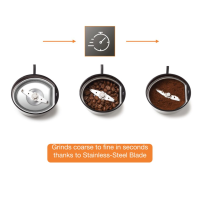• BRZI I RAVNOMERNI REZULTATI: Mlin za kafu opremljen izdržljivim oštricama od nerđajućeg čelika za savršeno ravnomerno mlevenje bilo koje finoće, osigurava savršene rezultate na širokom izboru napitaka od kafe