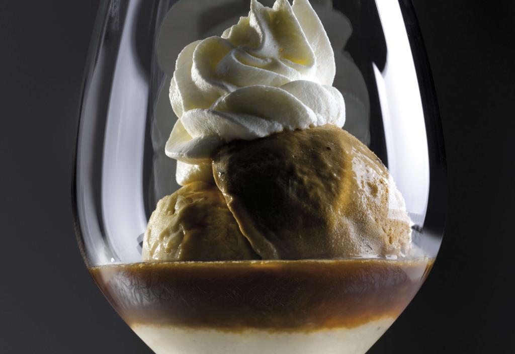 U činiju dodajte šolju svakog ukusa sladoleda, sipajte hladnu kafu i dodajte kremu.