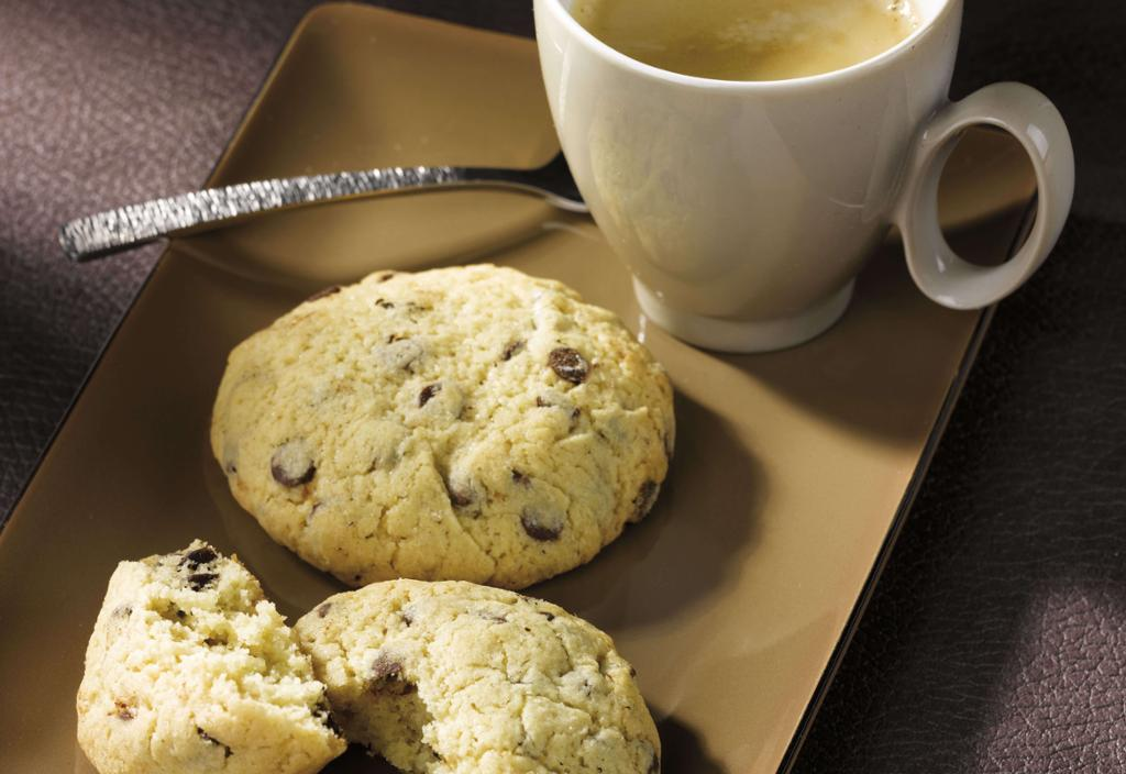 Pomešajte brašno i prašak za pecivo u dodajte u smesu. Dodajte čokoladne pahuljice.